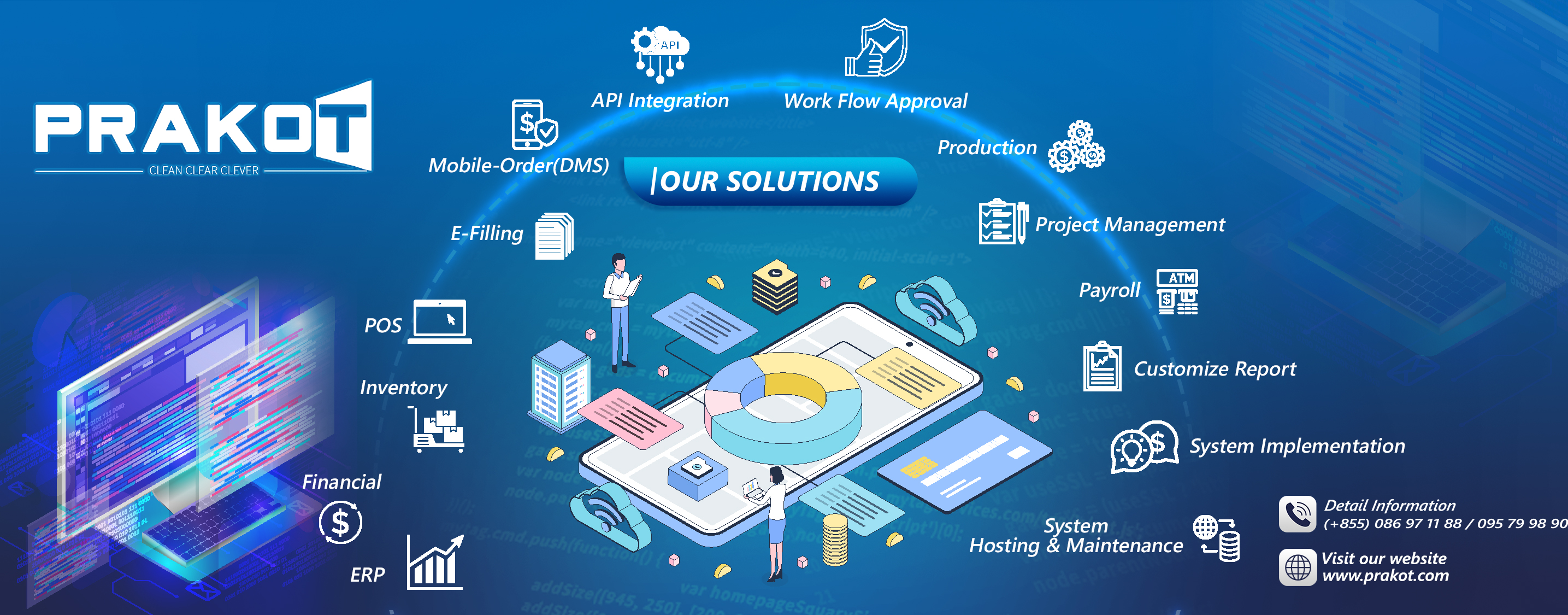 PRAKOT SOLUTION is a software solution company established in 2018. We provide products and services of conventional and intelligent software following integrity, loyalty, and innovation. We still enhance & improve services and products quality to provide better solutions for your business according to modern business today.